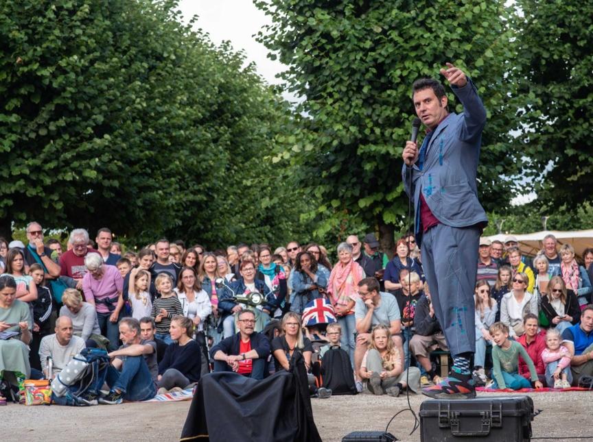 Vor mehr als einem Vierteljahrhundert startete er mit Jonglieraktionen in Buenos Aires und Straßenshows in Südamerika. Inzwischen hat er sein mitreißendes Straßentheater in fast vierzig Ländern auf vier Kontinenten gezeigt. Der Komiker jongliert bis zu sieben Objekte gleichzeitig. Seine urkomischen Improvisationen und Gags funktionieren ohne Worte. Nach Herrenhausen bringt El Goma eine Show, in der alles, was schiefgehen kann, auch schiefgeht. Gescheiterte Sketche in einem anarchischen Was-auch-immer-Modus. El Goma verwandelt gewöhnliche Situationen in nachhallende Begegnungen.