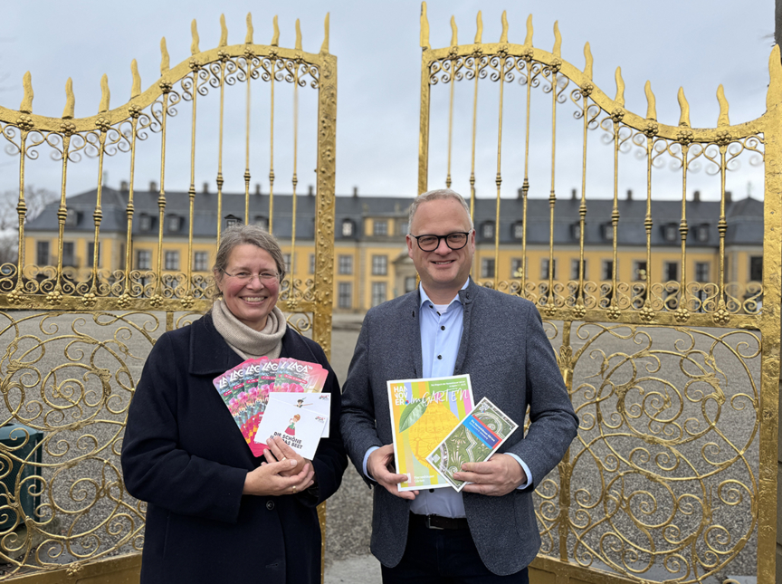 Foto: Die Direktorin der Herrenhäuser Gärten und der Geschäftsführer der LAGA beim Start der Kooperation im Herbst 2025.