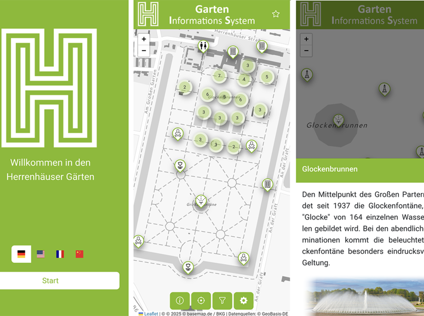Das Projekt ist eine gemeinsame Entwicklung der Herrenhäuser Gärten, des Instituts für Kartographie und Geoinformatik der Leibniz Universität Hannover sowie GeoIT Solutions Feuerhake. Ermöglicht wurde es durch die großzügige Unterstützung des Freunde der Herrenhäuser Gärten e. V.